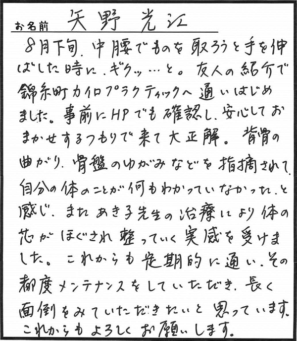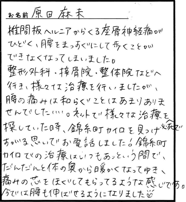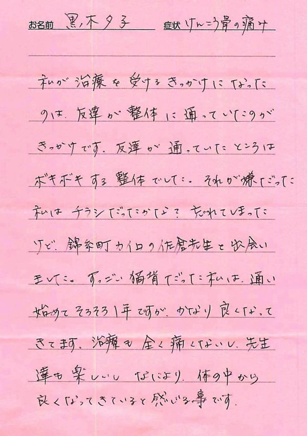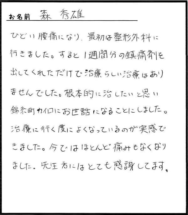 「根本的に治したいと思い錦糸町カイロにお世話になることにしました。」