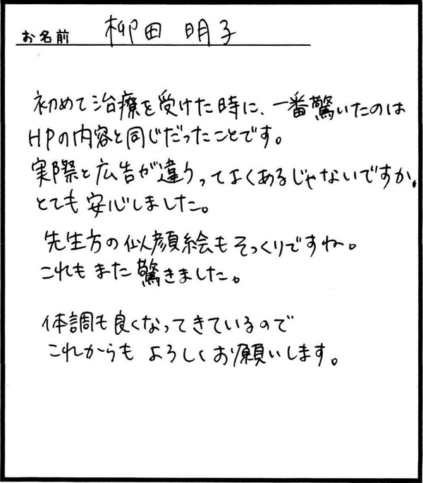 「初めて治療を受けた時に、一番驚いたのはHPの内容と同じだったことです。」