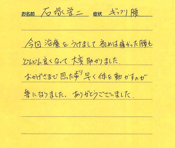 「おかげさまで思ったより早く体を動かすのが楽になりました。」
