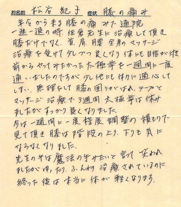 「膝は階段の上り下りも気にならなくなりました。」