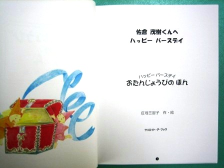 今日、治療中に宅配便でとどきました。なんとサプライズな演出でしょう!昼休みに包みををあけるとこんな絵本がでてきました!