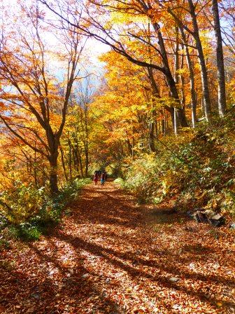 あとは楽ちん。紅葉の中を歩きます。