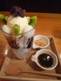 嫁さんは白玉パフェかな?たぶん(笑)黒蜜と黄な粉をお好みで。白玉が美味しいです。